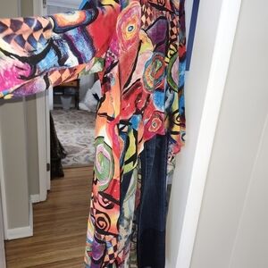 Adorable multicolor cotton blouse with a high low design and can be worn on any adventure, including the Eiffel Tower or date night