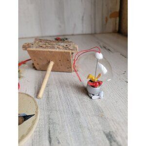 Product not all same brand, mini wooden bird feeders top plastic piece has dents and damage, mild scratches and marks on all others, but otherwise in good condition, set of 6