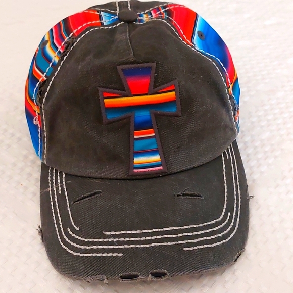 Unique cap with classic, distressed look; grey with inlays of color.100%