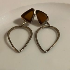 Dangle hoop is front facing, triangle is shadowy amber transparent. Lightweight
