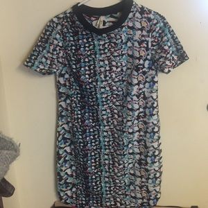 Never worn , different pattern cute I'm 5'1 and it goes to my mid thigh