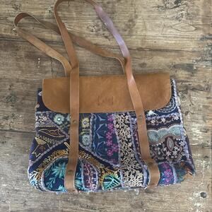 Unique embroidered boho patchwork leather crossbody bag with magnetic button closure . Shoulder straps perfect for notebook.