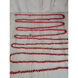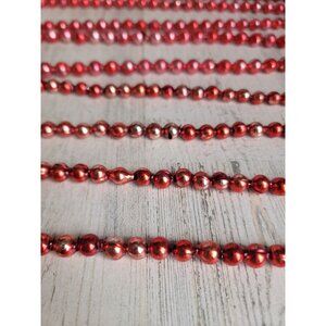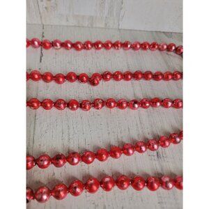 Product has multiple broken bead pieces on Garland, paint chipping and scratches, loose on string with a few gaps, Garland is loose and top beads are bigger than bottom half, sold as is, but otherwise in good condition