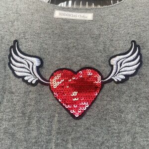 The softest, most unique sweater dress. Purchased on a boutique (Tendencias Clothes) in Lisbon, Portugal. Clingy in a sexy but not unflattering way. Sequin winged heart detail on back of makes it special. Great with boots for winter (or Valentine’s Day!).