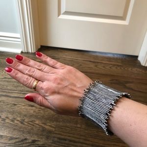 Unique metal cuff with stretch for easy wear (shown in photos)