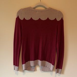 Love this cardigan in great condition small amount of pilling and armpits but I can try and get that off. Nice delicate scalp detailing around the neck and shoulder area. Maroon burgundy taupe. Comes from a smoke and pet free home. Comment with questions
