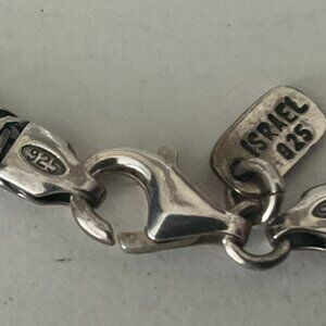 Unique 925 silver necklace with blue stones. Sorry, I don't know what the blue stones are. This unique one-of-a-kind necklace was made and purchased in Israel.