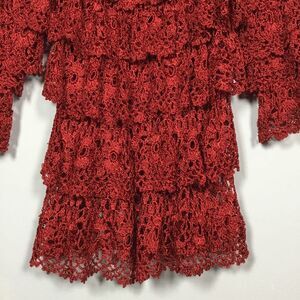 Unique ra-ra top red crocheted 3/4 sleeves layered top beach resort vaca S/M