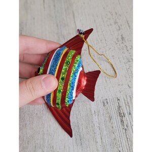 Unique red striped angel fish glitter ornament Xmas ocean sea