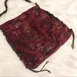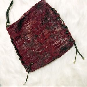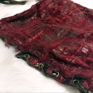 Unique red-purple pink color python - snakeskin like + faux fur bag ! Very unique combination! Twist strap. Tassels with gold hardware. Zips fully closed. Brown satin like lining. Pre owned!