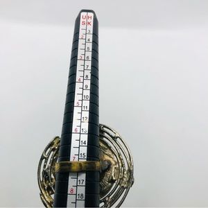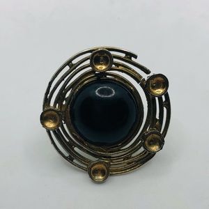 Unique ring Size 7 Has a black ball And has a gold colored outer decoration 5 small half circles