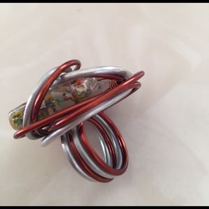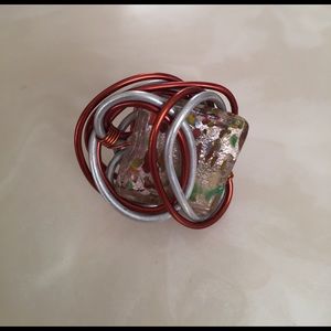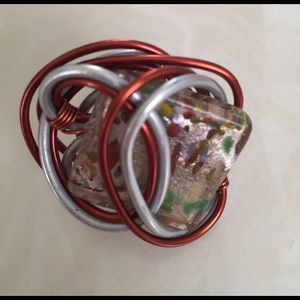 Unique ring from Italy! Copper and silver colors around a unique colorful sea-glass stone! Fits my ring finger which is a size 7-7.5