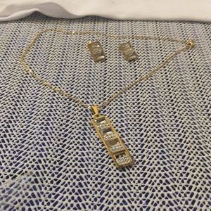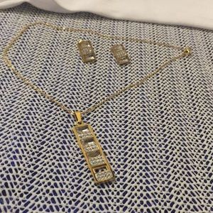 Nice pendant and earrings is 14 karat stainless steel set with diamond stone is beautiful and nice unique is nice for occasion