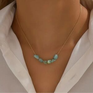 • Eye-catching Design: The irregular immitation turquoise stone and unique chain make this necklace a standout piece for any outfit.
