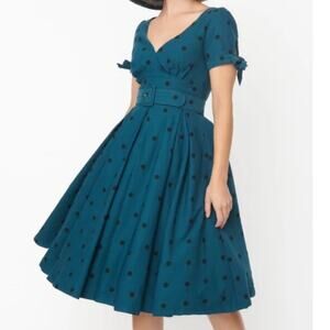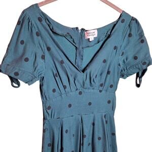 Unique vintage Teal polka-dot rockabilly pin-up style retro a line dress fits m