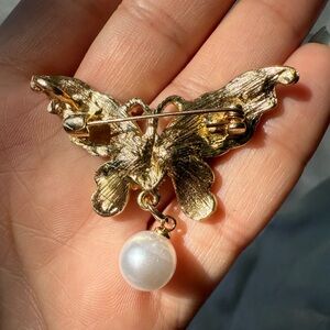 Unique vintage anthro blue and Gold Butterfly Brooch