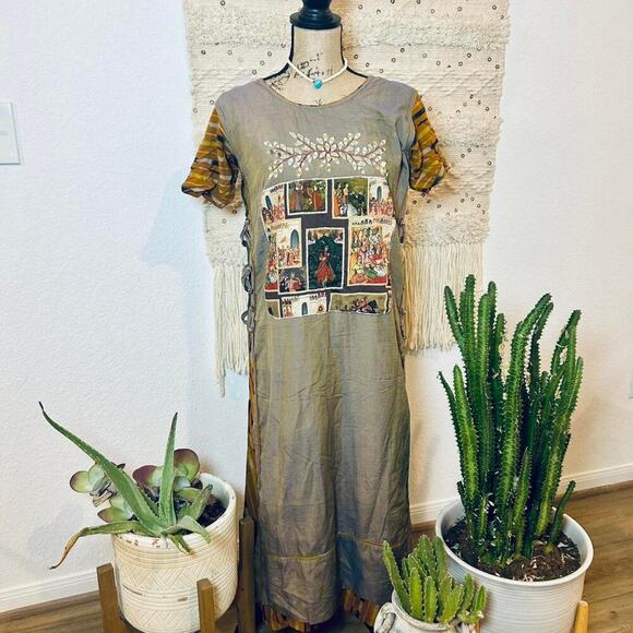 Unique vintage patchwork dress with embroidery and mirror sequin boho whimsy
