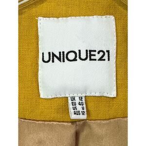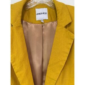Unique21 Linen Blend One Button Casual Relaxed Boyfriend Blazer Size 8 Yellow Girl Boss Boss Babe