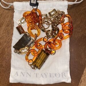 Gorgeous necklace from Ann Taylor. Perfect for that dinner date! Gold link chains, crystal faceted stones, amber link
