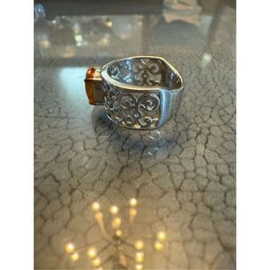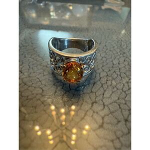 Very unique artisan style ring with amber stone . .925 silver . Sz 8