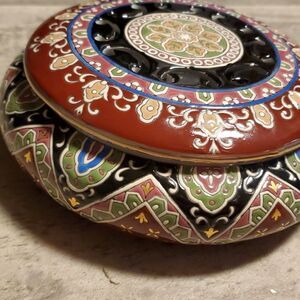 Unique Ceramic Round Potpourri Bowl, absolutely no chips or cracks. Some color variation on bottom. This bowl is stunning! Great for just decor too.