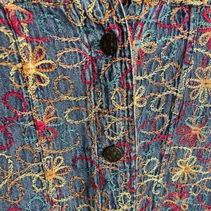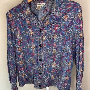 Unique Coldwater Creek Embroidered Button down Blouse, Size Large