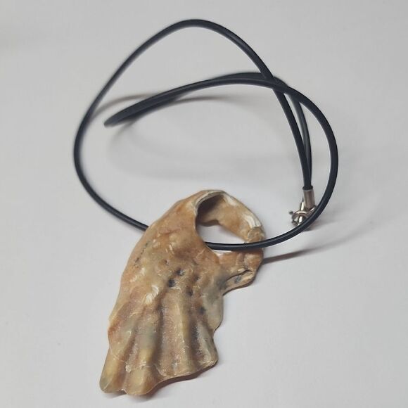 Natural shell pendant on a black cord. Perfect for beach lovers. Adds a touch of nature to any outfit.