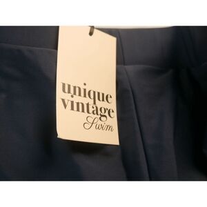 Embrace pin-up perfection with these vintage-inspired Capitola Swim Shorts by Unique Vintage. Designed in a timeless navy blue, these high-rise swim bottoms feature a wide waistband that flatters your natural silhouette and faux double-breasted nautical button details. The modest boyshort cut offers comfortable coverage while keeping the look playfully retro. Perfect for mixing and matching with swim tops or heading to a poolside party with a throwback vibe.