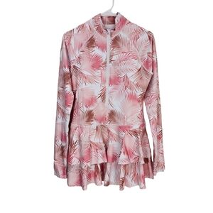 Uniquebella Women's Pink One-Piece Long Sleeve UPF50+ Ruffle Skirt Swim Suit