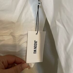 Unique cropped white collared button up top