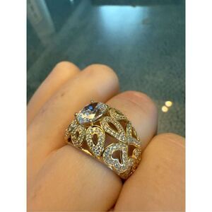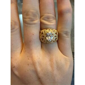 Ornate gold ring with Cubic Zirconia . Size 8 . Unique design
