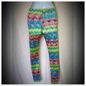 These leggings are a type of knit, as opposed to a stretchy synthetic fabric normally found in current leggings. I tried to get close ups of this fabric in photos. They do have give & stretch. They also have a form fitting silhouette, like leggings should. However, tags are no longer on them, they were a small.