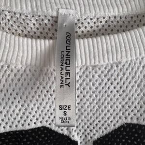 Uniquely Lorna Jane 89 Knit White and Black Open Knit Jersey Sweater Size Small