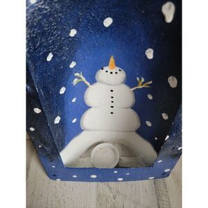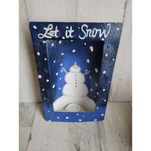 Unique metal tea light Let It Snow snowman candle holder Xmas decor