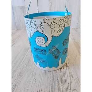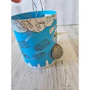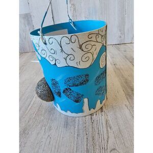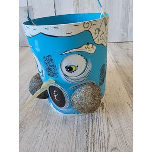 is about 11 in tall, with a mouth of about 5 in, has a wire basket that is movable, overall good condition, does have a couple marks on it, no other problems