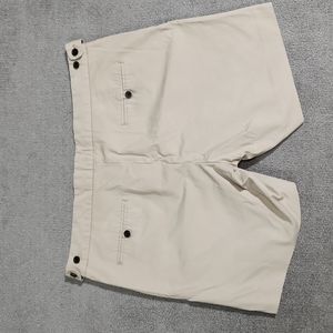 men's size 38, has a light stain near front pocket and pin sized holed on back, see pics, neither stands out. inseam 7 in