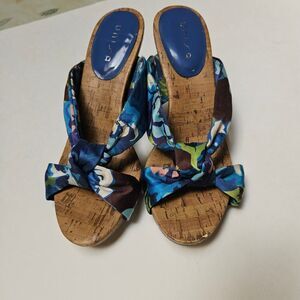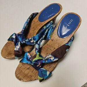 The satiny upper fabric with decorative knot has an array of colors to match most things and the cork style sole and wooden heal make these cute shoes a perfect add to any gal's wardrobe!