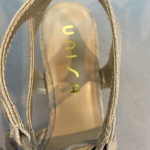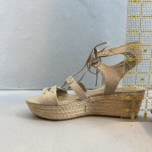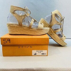 Unisa Gold Fabric Strappy Wedge Sandal SZ 10 Summer/Vacation/Boho Style