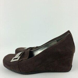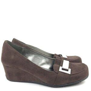 Unisa Womens Heels Size 7.5 Chocolate Brown Buckle Loafer Wedges