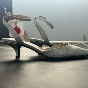 Elevate your style with these Unisa silver kitten heels, featuring a dazzling glitter finish perfect for special occasions. The sleek silhouette and pointed toe design add a touch of elegance to any outfit. Ideal for making a statement at your wedding or holiday party! Never worn, size 10. Heel height is a comfortable 2 inches - so perfect for us taller women!