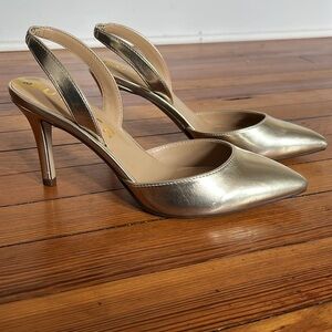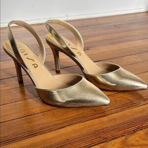 Unisa Light Gold Neutral Classic Pointed Toe Slingback Heels - Size 8