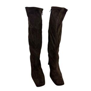 Unisa Lynx Knee High Boots, Women's Size 10B, Brown Faux Suede Square Toe