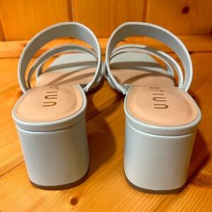 Unisa Miriam Square Toe Slide Sandal Block Heels Light Blue NWOT