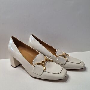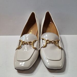 Unisa NEW Unlittia Preppy Ivory Patent Leather Neutral Block Heel Loafers Sz. 9