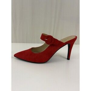 Unisa Pointed-Toe Kitten Heel Mary Jane Style Slingback Pumps Red Suede Size 9.5