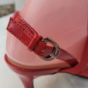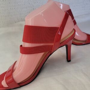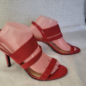 Unisa Size 7 1/2 Shoes Marna Red Heels Strappy Open Toe Pump Glossy LIKE NEW
