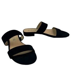 Unisa Womens size 8.5 Strappy Sandal Slide Black Low Block Heel Slip on Summer