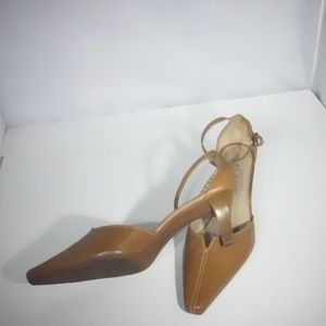 Unisa Tan Pointy Toe Ankle Strap Sling with 2 inch Heel. Excellent Condition. Unable to get a photo of branding that reads "Kettle 8-M 8B Made in Brazil, Genuine Leather Upper.