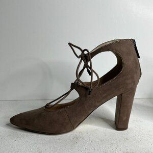 Unisa Tan Suede Laced Front Pointed Toe Block Heels Pumps Size 7
