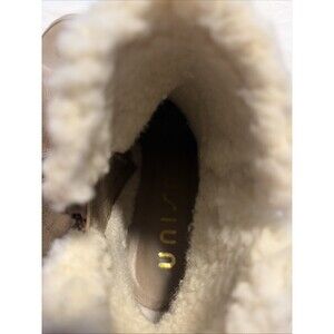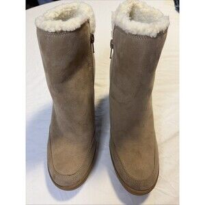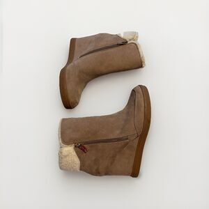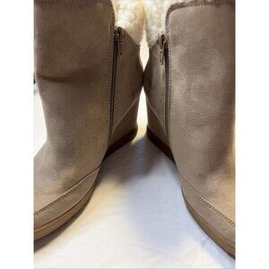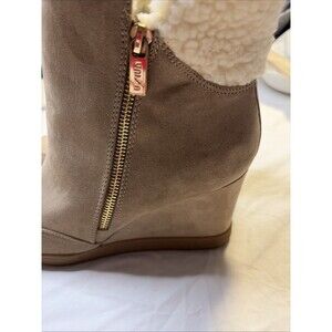 Unisa Wedge Tan Suede Ankle Winter Boots Women 8.5M Sherpa Lined Boho NEW